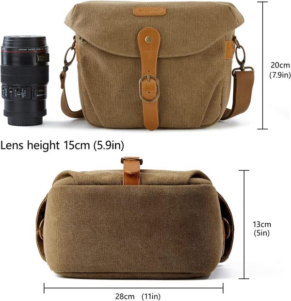 BAGSMART Camera Bag, SLR DSLR Canvas Crossbody Camera Case, Compact Camera Shoulder Bag with Rain Cover for Women and Men, Khaki