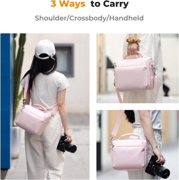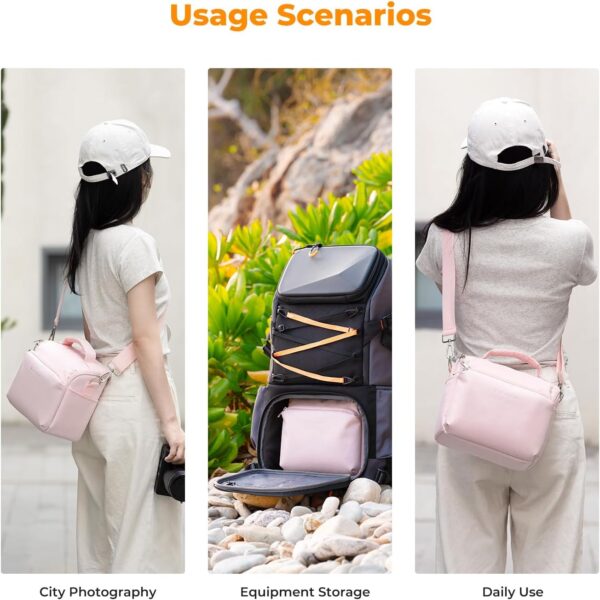 Made from durable and water-resistant materials, this cute and compact shoulder bag is perfect for everyday use. The adjustable strap allows you to wear it comfortably over your shoulder or across your body, making it easy to carry wherever your photography adventures take you.
