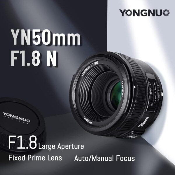 The YONGNUO YN50mm F1.8N Standard Prime Lens is a versatile and high-quality lens designed for Nikon DSLR cameras. With a large aperture of F1.8, this lens allows for excellent low-light performance and beautiful background blur, making it ideal for portrait photography and creative effects.